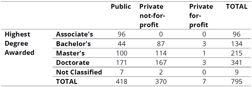 Respondents were largely human resources and provost office professionals from higher education institutions in the U.S. There were 795 institutions that completed the survey.