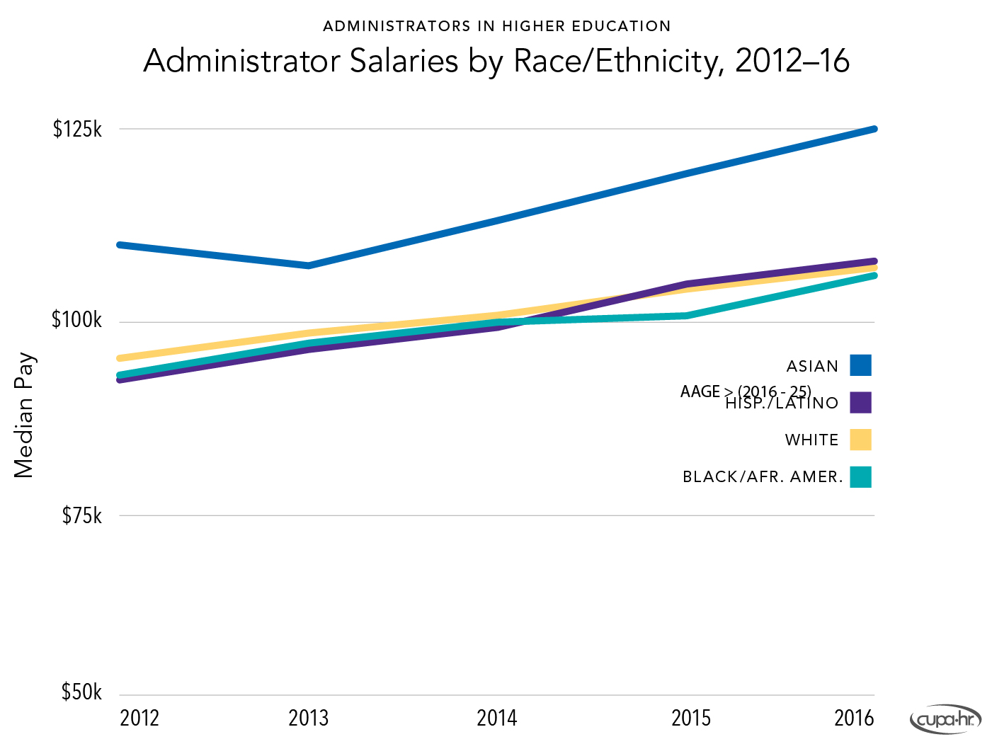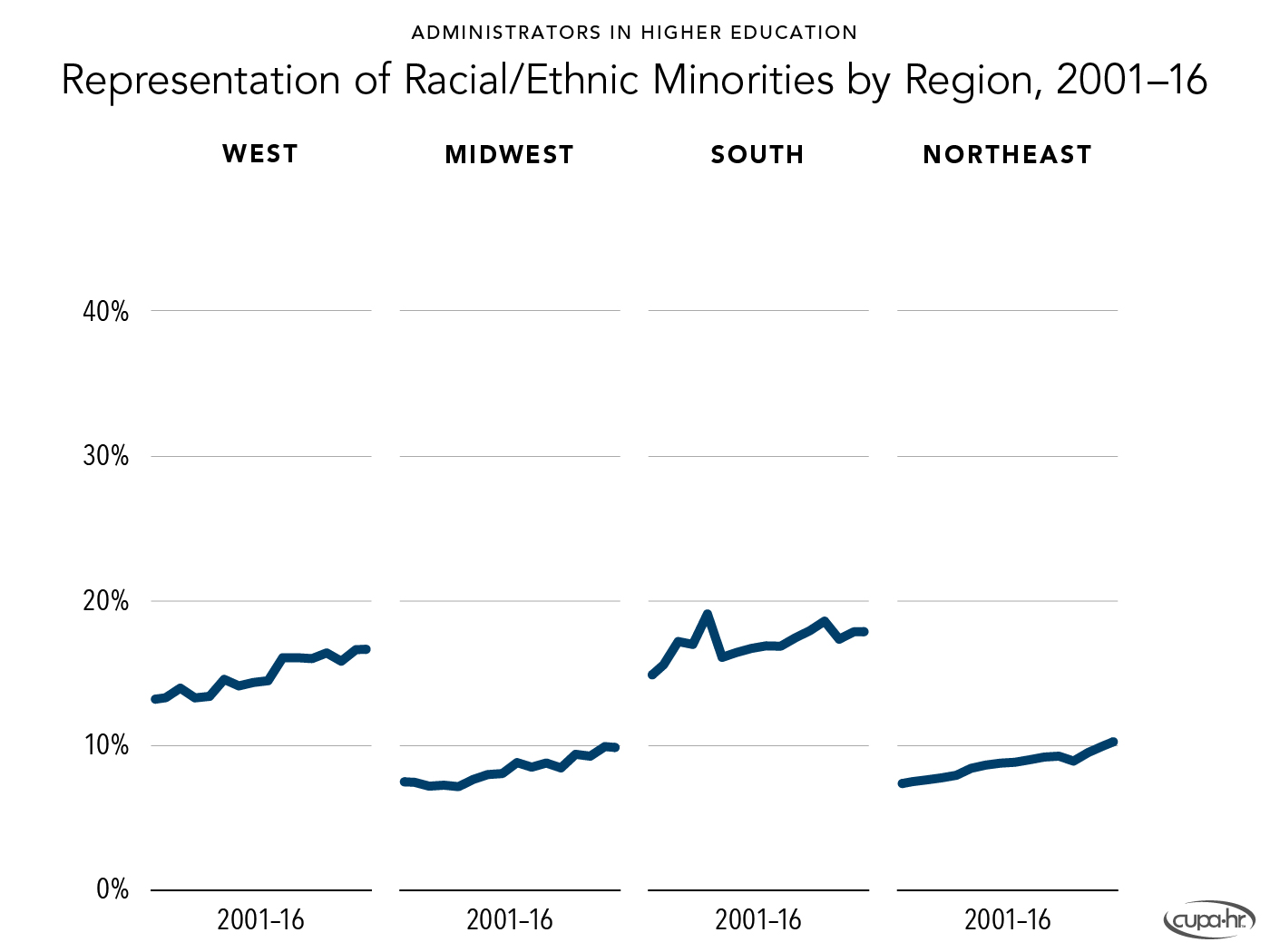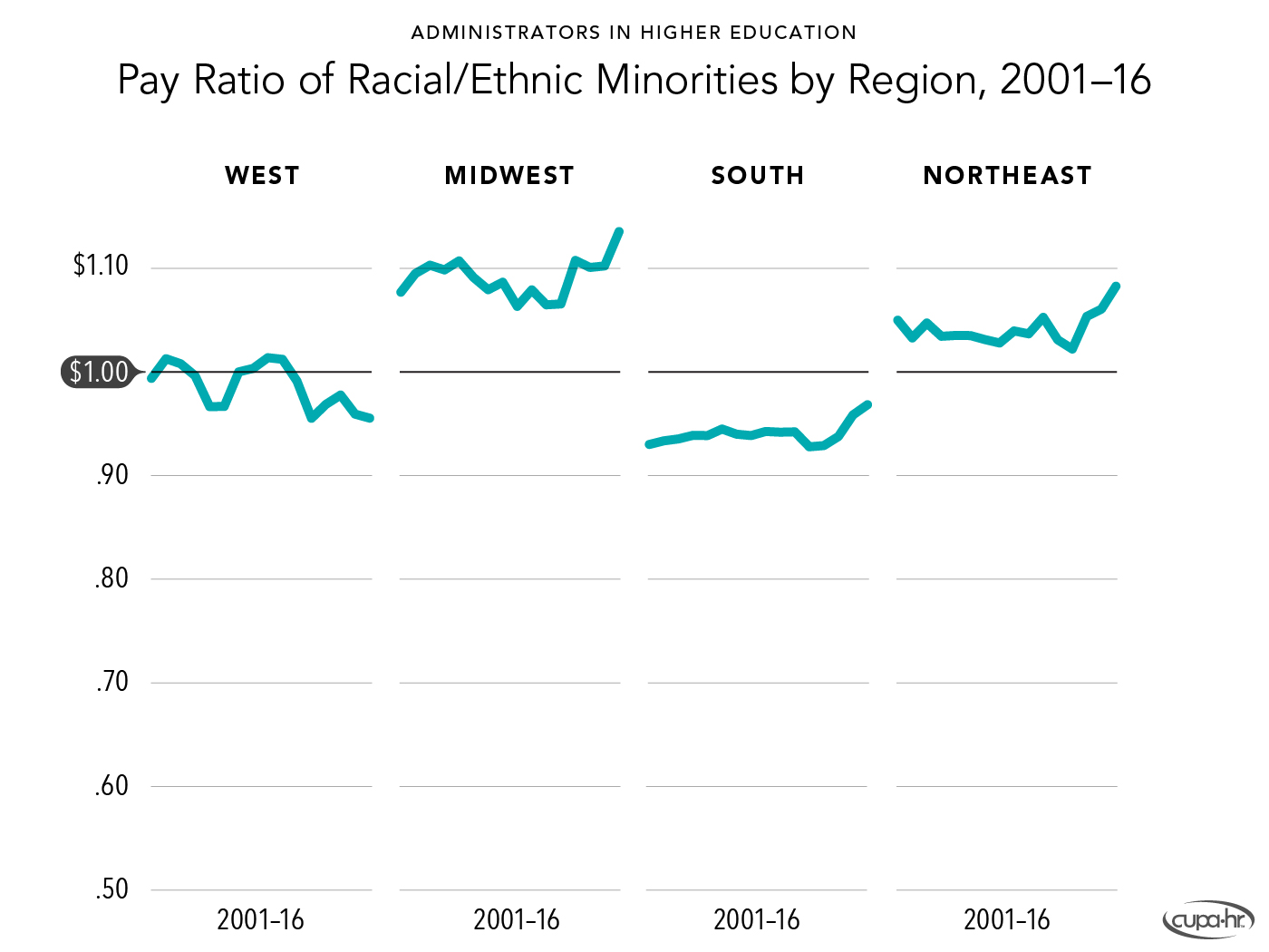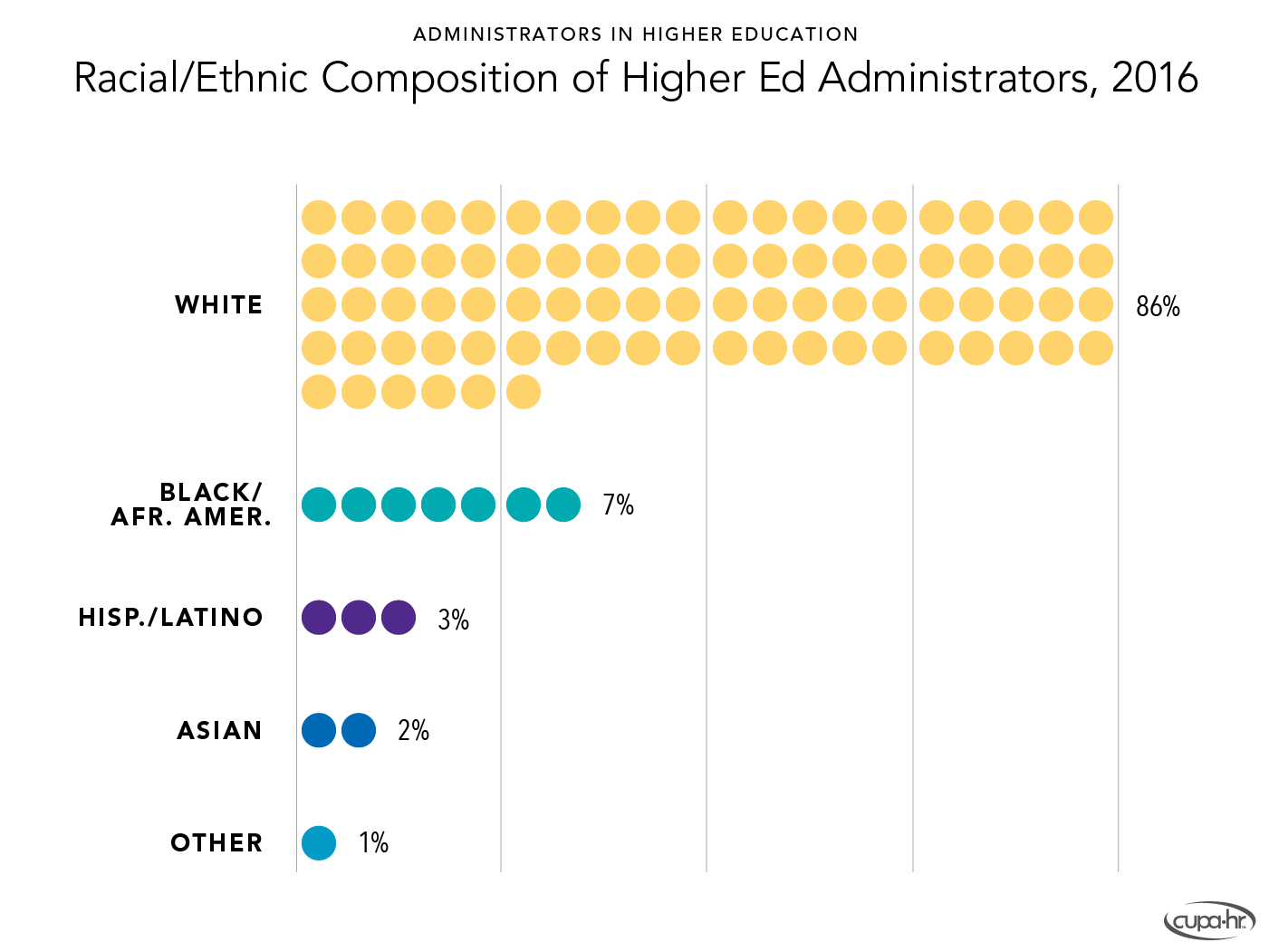 Bichsel, Jacqueline, & McChesney, Jasper (2017, March). Pay and Representation of Racial /Ethnic Minorities in Higher Education Administrative Positions: The Century So Far (Research Report). CUPA-HR. https://www.cupahr.org/resource/2017-pay-and-representation-of-ethnic-minorities-in-higher-education-administrative-positions/