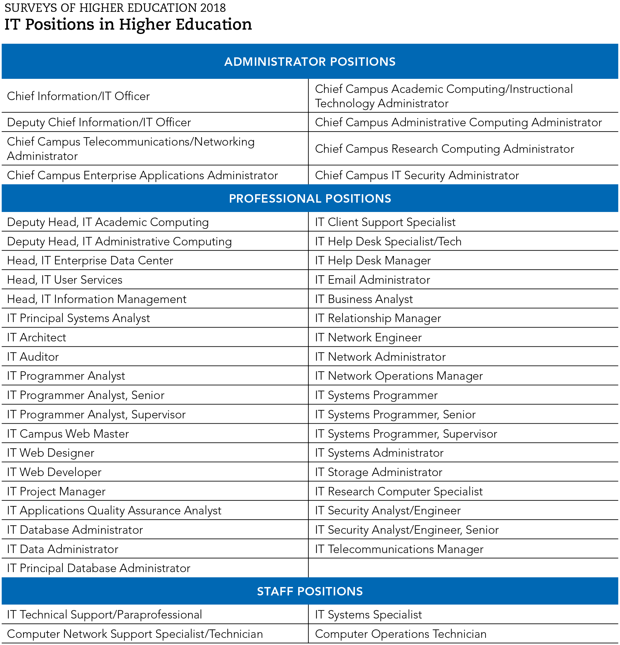 Table 1. Surveys of Higher Education 2018 IT Positions in Higher Education