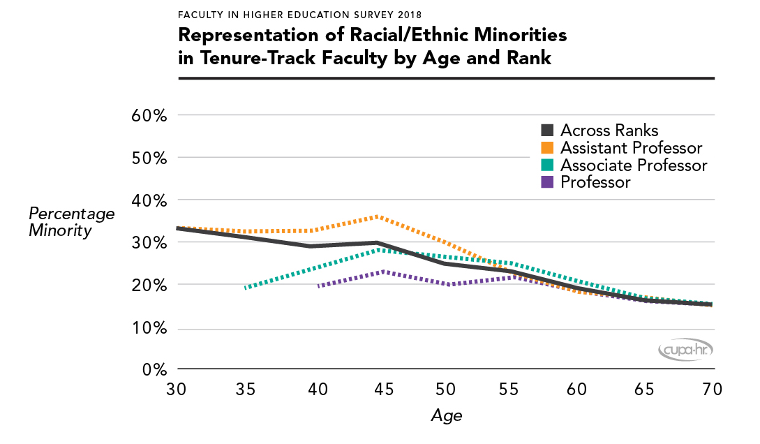 Figure 5. Representation of Racial/Ethnic Minorities in Tenure-Track Faculty by Age and Rank